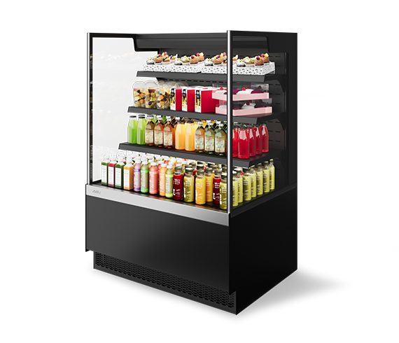 Открытая пристенная витрина, выполненная в минималистичном дизайне - прекрасное решение, которое поможет наиболее эффективно преподнести готовую еду, порционные десерты и напитки.